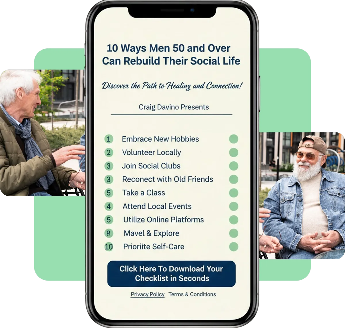 Get This FREE Copy Of “10 Ways Men 50 and Over Can Rebuild Their Social Life” & Discover the Path to Healing and Connection!